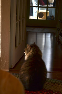 I like the view from the window or from the floor. People don't think feet are interesting, but they are. Feet can be uncertain. Walk confidently, stop and suddenly turn. Mary Lou, our housekeeper, Jack and Will always take their shoes off when they come in the back door which takes you into the kitchen. Then, I see footed socks going right into the den or the bathroom, up the stairs, always with assuredness, never hesitant. When parishioners come in the front door and keep their shoes on in the parlor, they hesitate, their feet are unsure...maybe they truly are, too.